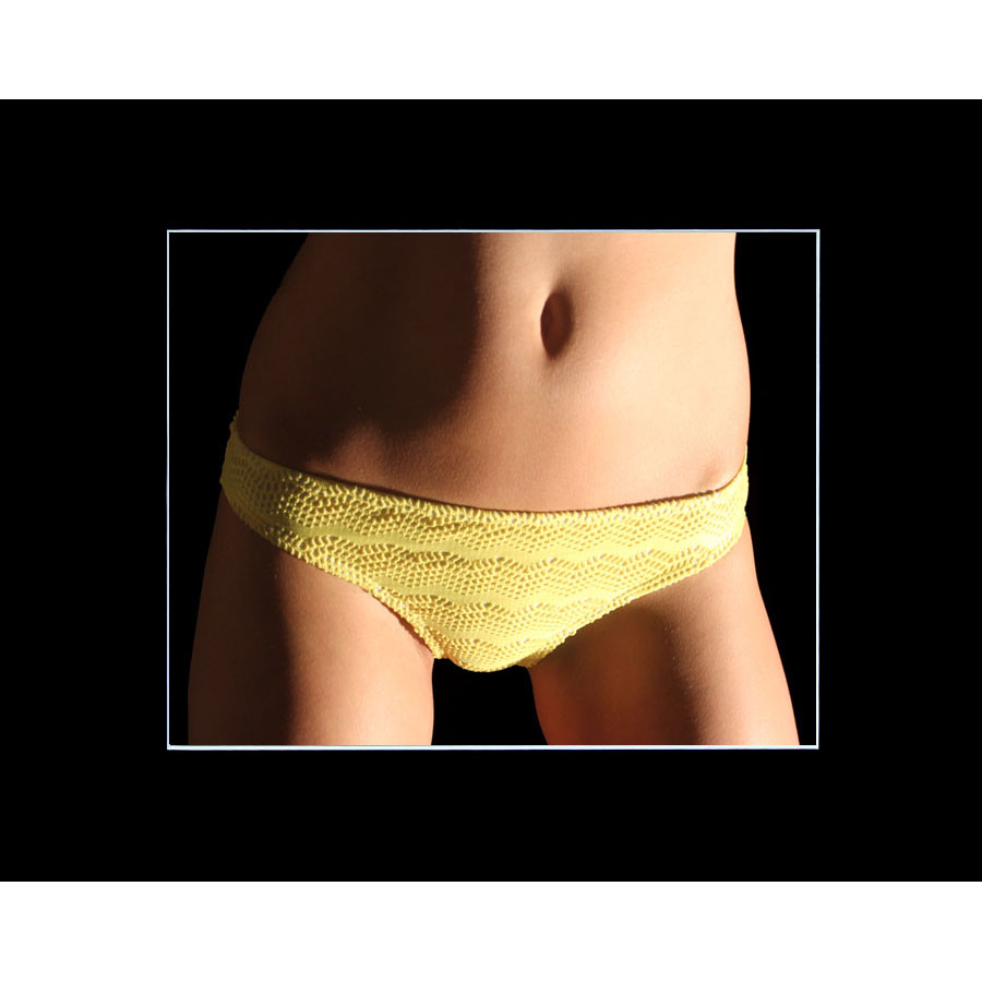 This erotic bikini art features the slender hips of a lovely in yellow bikini bottoms. The image was captured in Joshua Tree, California. Add some spice to your living space or bedroom with erotic bikini art on your wall. Who doesn’t love a perfect lady’s hips? This original color photograph is signed and available in a variety of sizes and media.